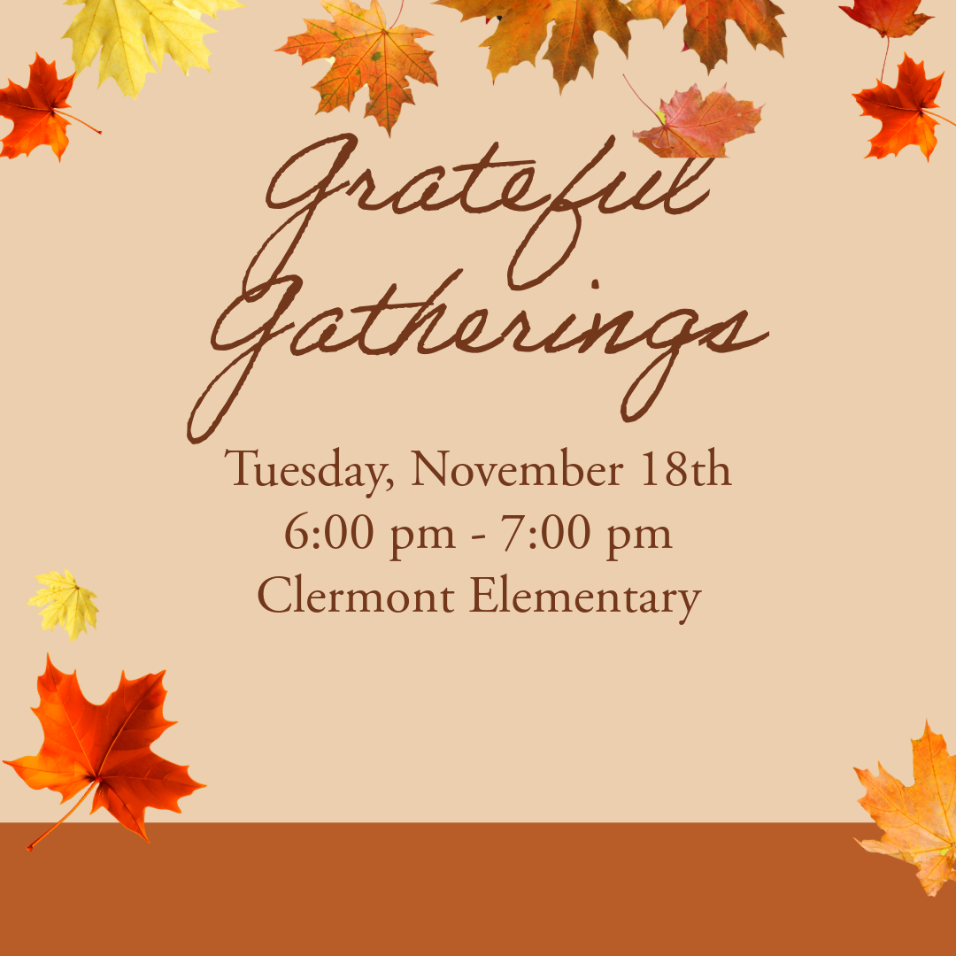 Join us on Tuesday, November 18th from 6-7PM at Clermont Elementary School for a one-hour Thanksgiving themed evening event with a story, craft, and a snack. This event is for families with children who are not yet in kindergarten. Registration is required and will close on November 7th.