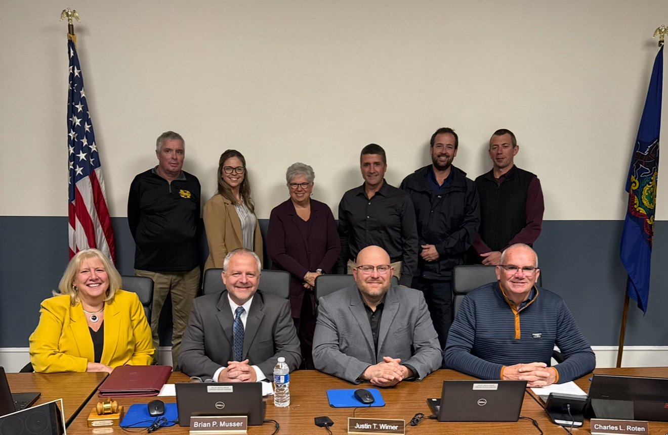 Front Row (L to R) Sandy Smart, Secretary (Non-Voting Member), Brian Musser, President, Justin Wimer (Vice President), Charles Roten (Treasurer)